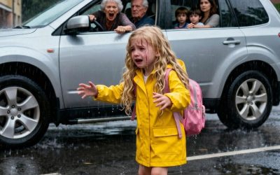 La lluvia caía a cántaros, fuertes y constantes, convirtiendo el aparcamiento de la escuela en un espejo gris borroso. Estaba…