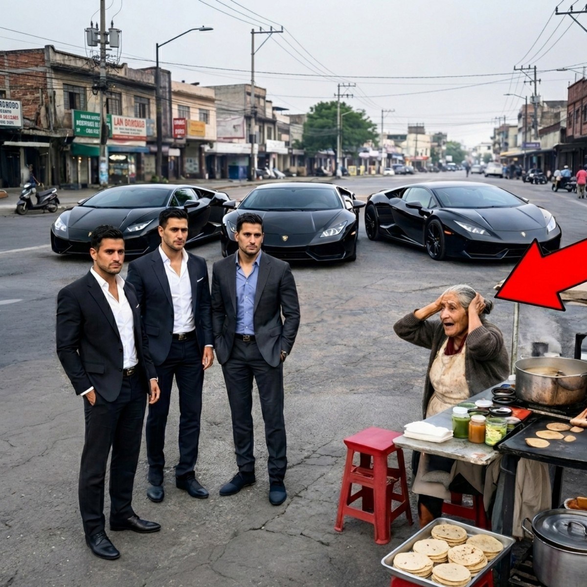 Una anciana pobre alimenta a tres gemelos sin hogar; años después, tres Lamborghinis se detienen frente a su tienda…