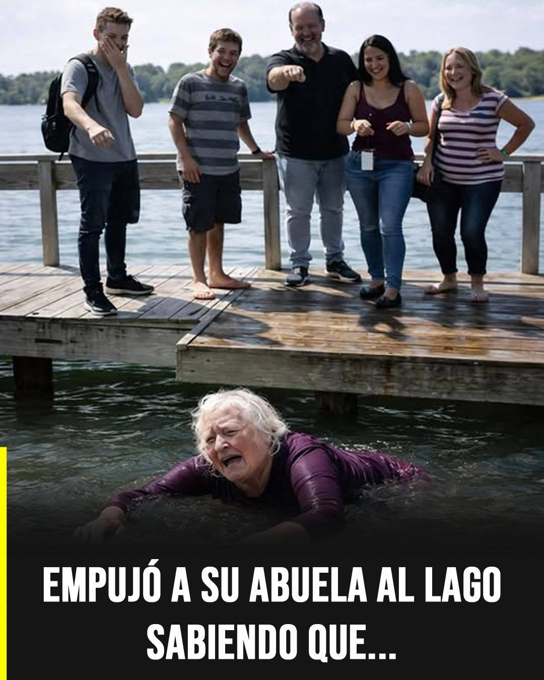 Era una tarde serena junto al lago. El viento apenas movía la superficie del agua y el muelle de madera crujía suavemente bajo los pasos. Doña Elena, con un pañuelo bien acomodado sobre la cabeza, contemplaba el paisaje con calma. Siempre había sido sincera respecto a algo que nunca logró superar: su miedo al agua. A lo largo de los años lo había repetido muchas veces. No sabía nadar, y tampoco pretendía ocultarlo.